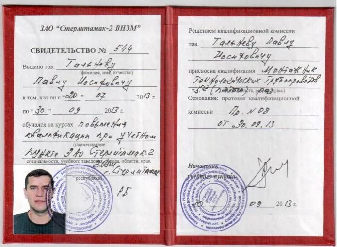 рис.2 Удостоверение монтажника 2017 года с фото, обучение г. Москва.